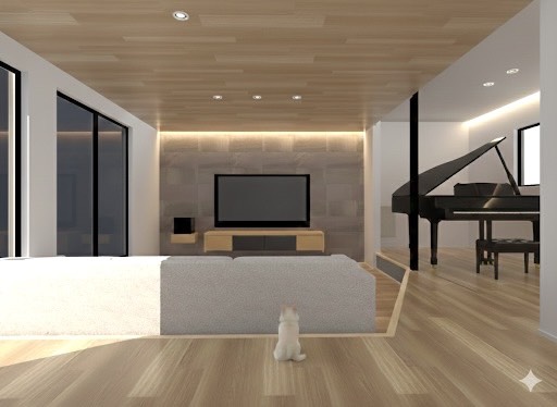 音楽が趣味の奥様のグランドピアノが置けるリビング。